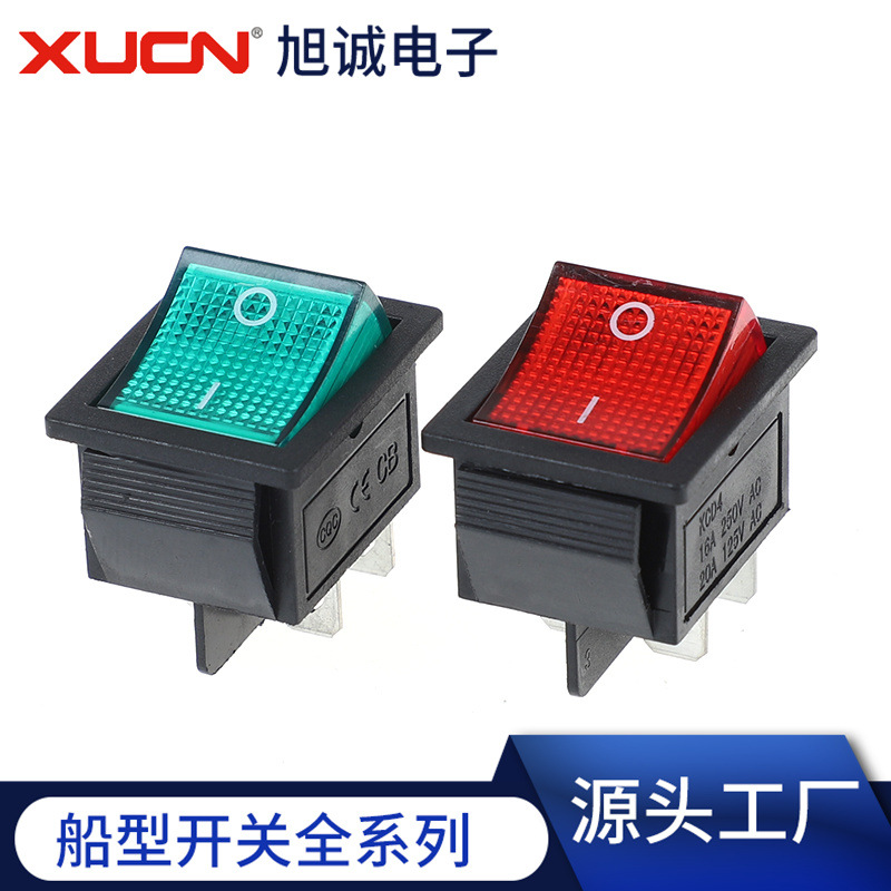 KCD4 ボート型スイッチ赤カバーロッカースイッチ 4 ピンライト付きボート型スイッチ 250V 16A 電源スイッチ