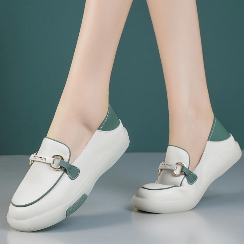 2025年春秋の女性用スリッポンシューズ、新作白靴、ソフトソール浅口ローファー、牛筋底、女性用軽量靴
