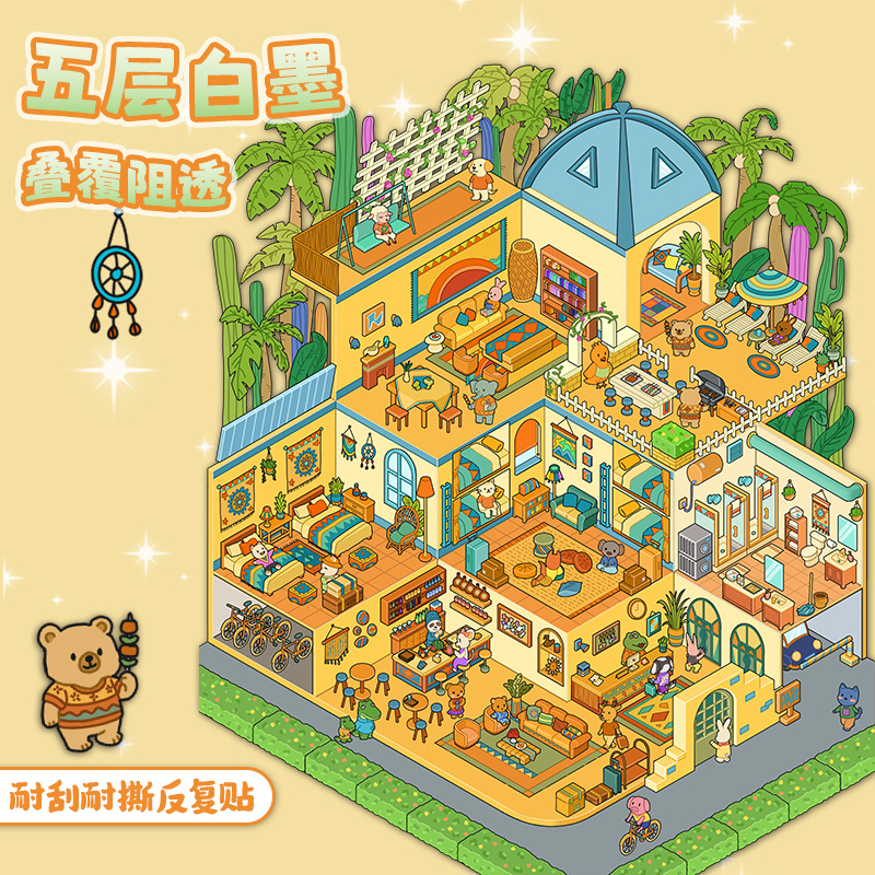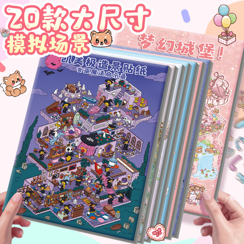クロスボーダー超大型版造景シール高度版3d立体無裁断韓系アニメミニチュア展開シーンシール