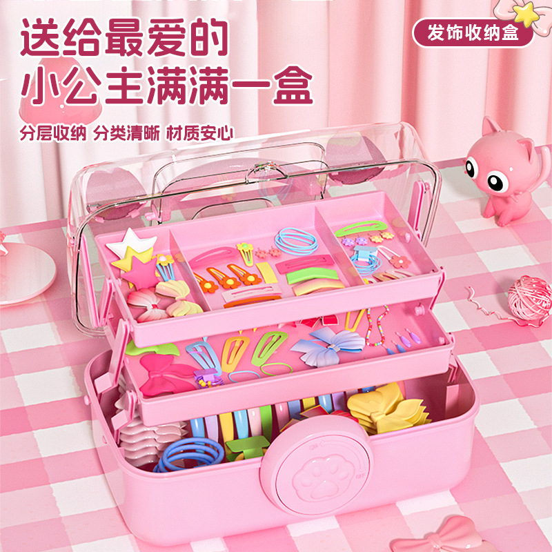 子供用ヘアアクセサリー収納ボックスデスクトップ大容量ジュエリーボックス蓋付き女の子ゴムバンドヘッドバンドヘアピンかわいいオーガナイザーボックス