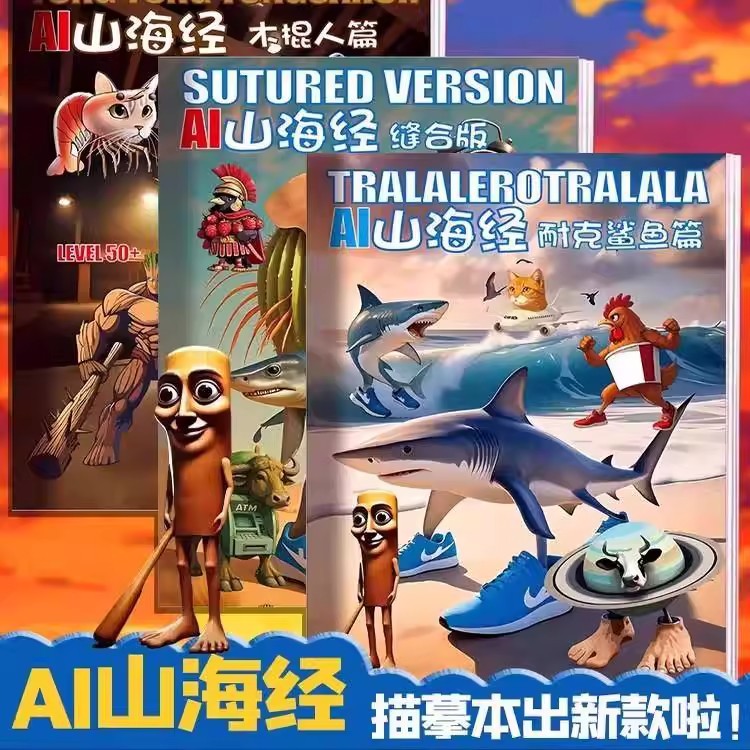 外国の山と海の経典のコピー本 ai 木の棒の男の子の手描きの絵本ぬり絵絵の色付けコピー本