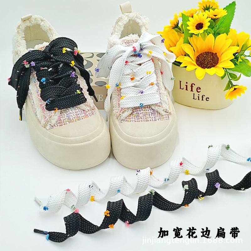 黒と白のレースの靴ひもワイドフラット diy バレエスタイルの道徳訓練靴シルクレースの靴ひもロープペア