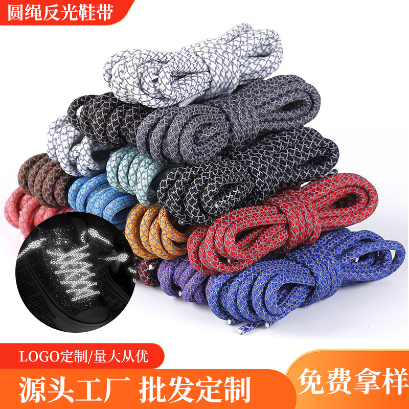 工場卸売反射靴ひもロープ発光靴ひもフィットココナッツお父さん靴ハイキングシューズ発光靴ひもロープラウンド厚い
