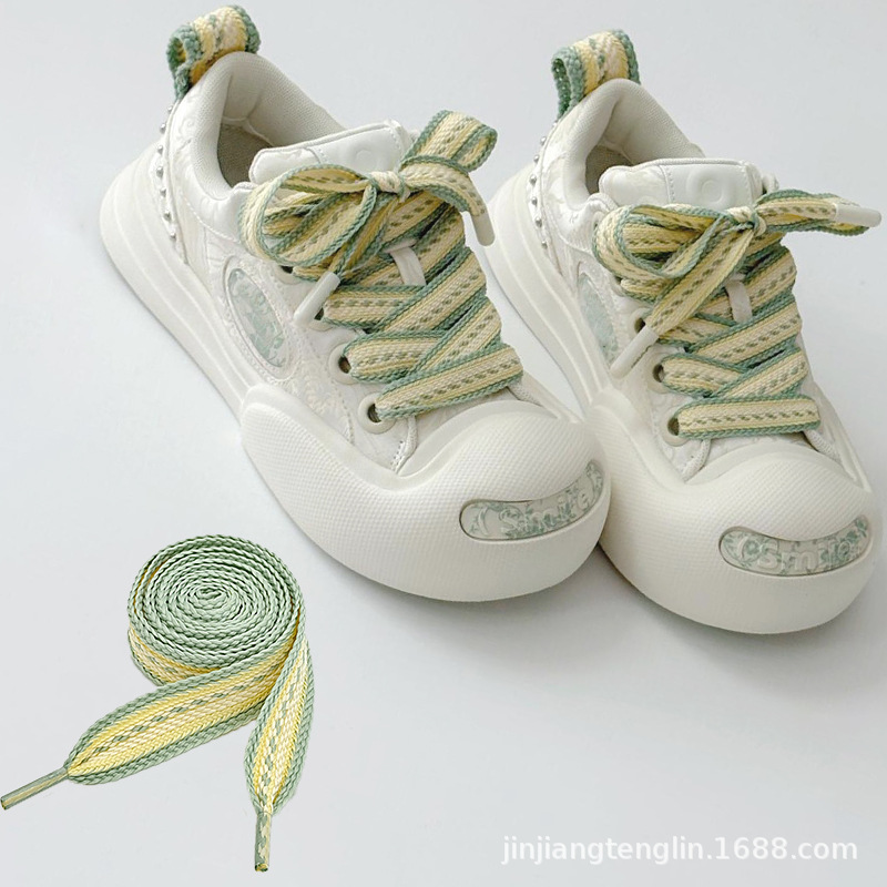 2 センチメートル新しい diy 黄緑ダブルカラーブロック織り靴ひも適応オープン笑顔キャンバスシューズ大きなつま先靴ひもロープペア