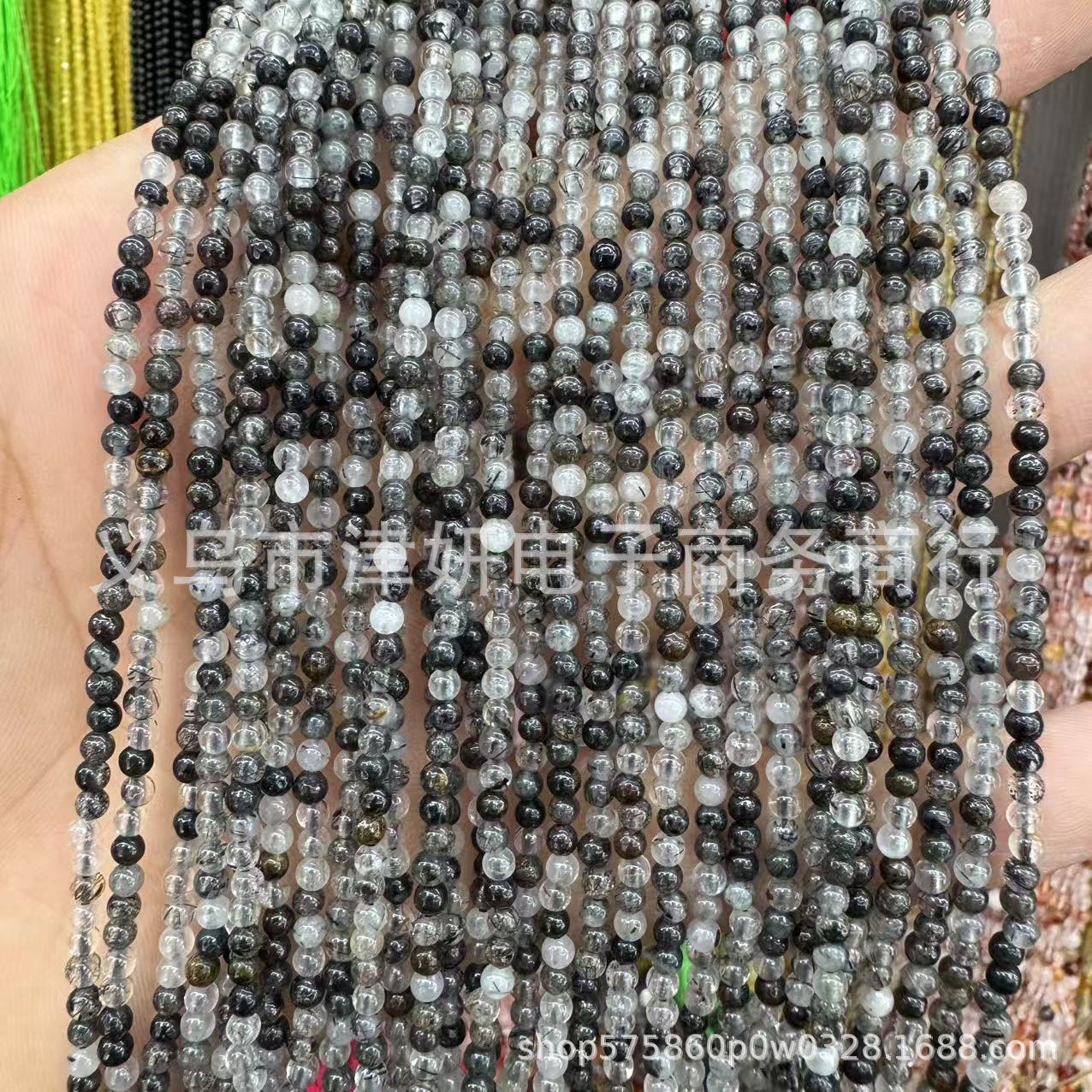 天然3mm黒髪晶水晶散珠玉原石ブレスレットネックレスdiy半製品水晶アクセサリー部品