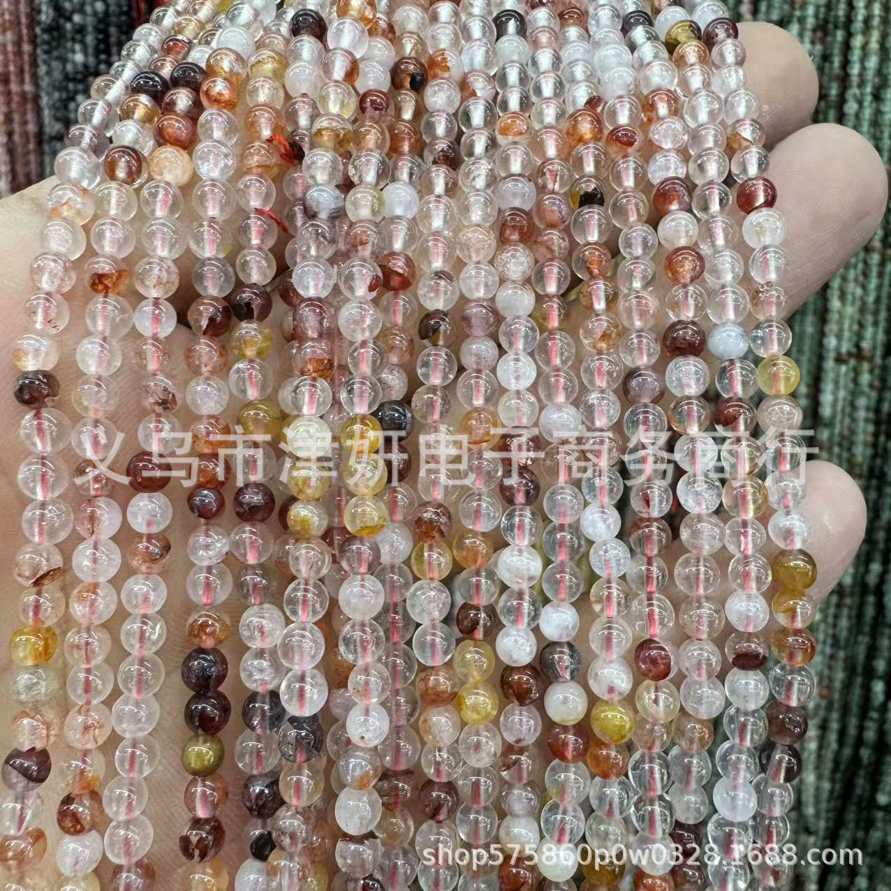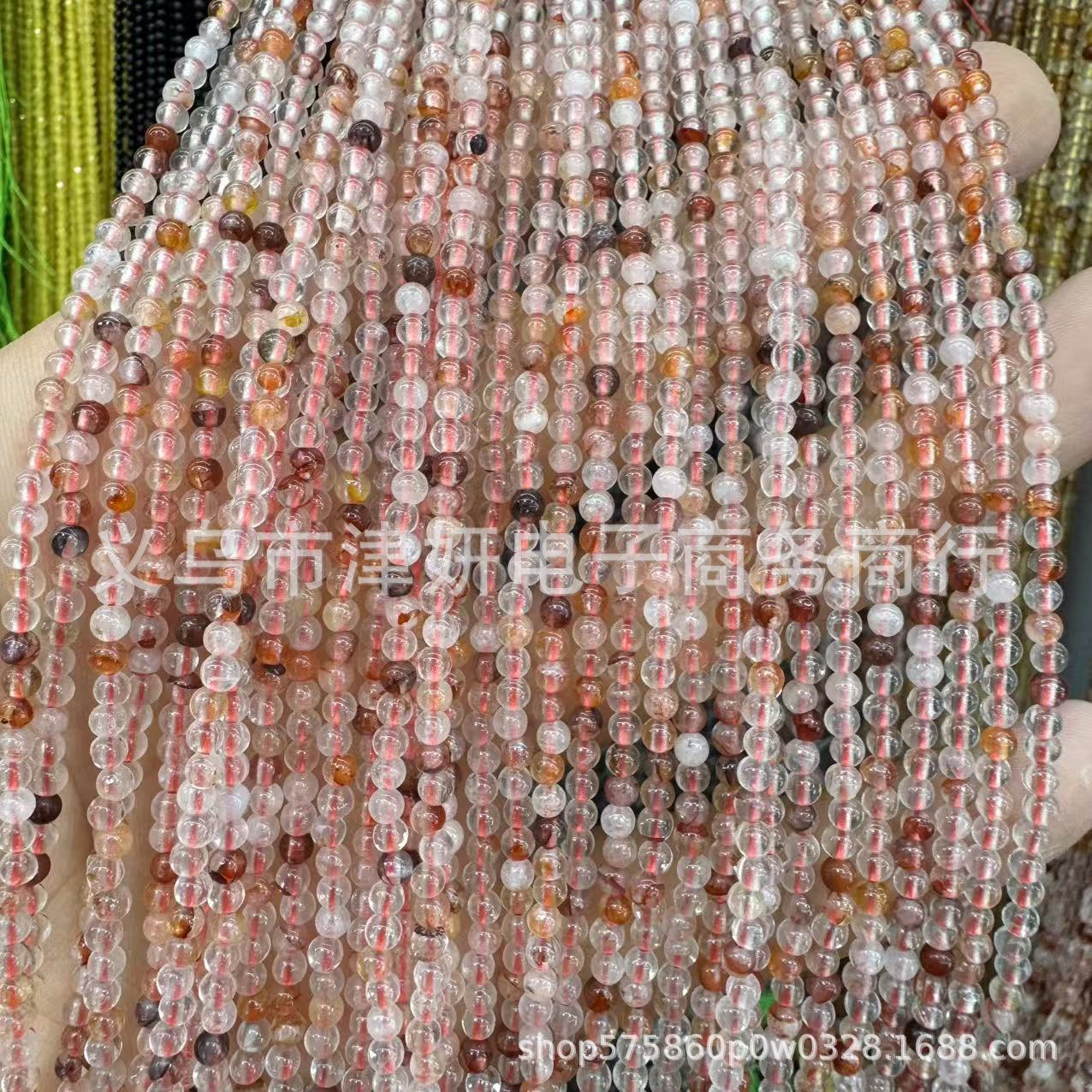 天然4mm赤ゴム花水晶散珠玉原石ブレスレットネックレスdiy半製品水晶アクセサリー部品