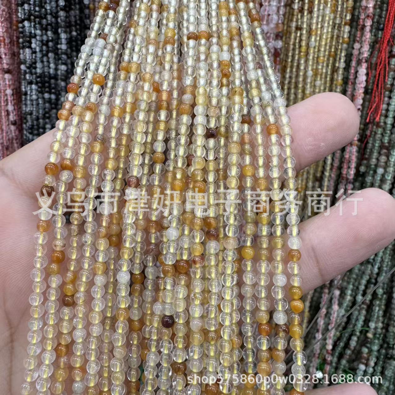 天然3mm金発晶水晶散珠円珠原石ブレスレットネックレスdiy半製品水晶アクセサリー部品