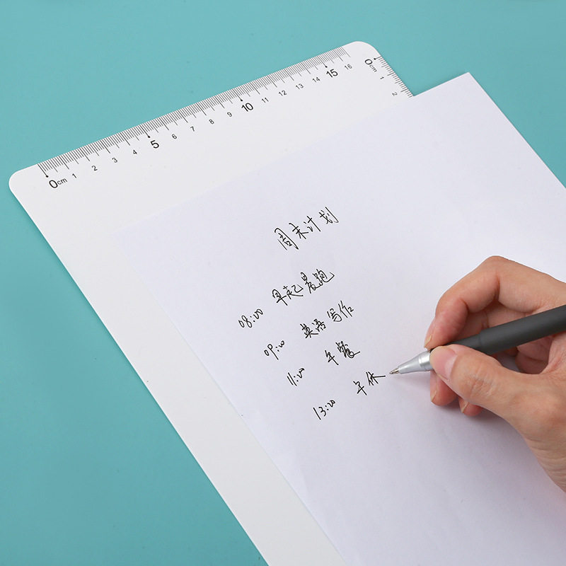 白い目盛りの試験の下敷きの板の卸売りのつや消しの光沢の面は2つのサイズの目盛りの両用の下敷きの板の新型の現物を持つことができます。
