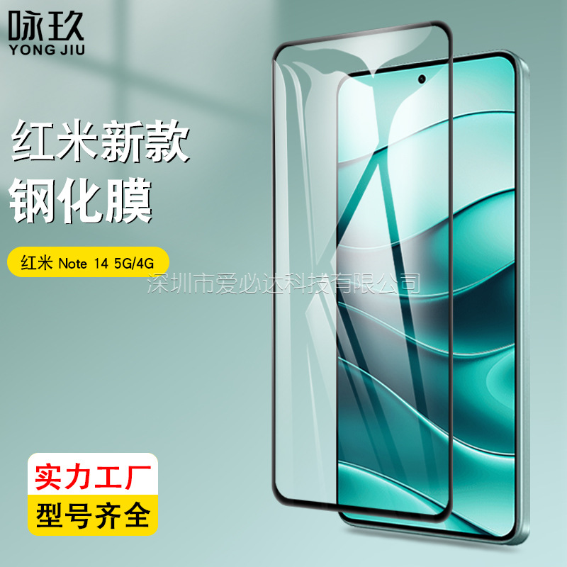 Redmi Note13/13 Pro フルスクリーン強化フィルム Redmi Note14/14S シルクスクリーンガラスフィルムに適しています。