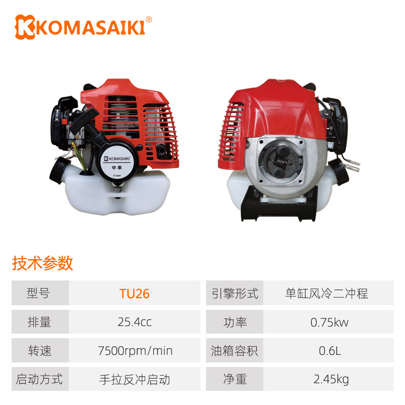 2ストローク芝刈り機本体TU26小型ガソリンエンジン草刈り機ヘッド刈払機ユニバーサルエンジン