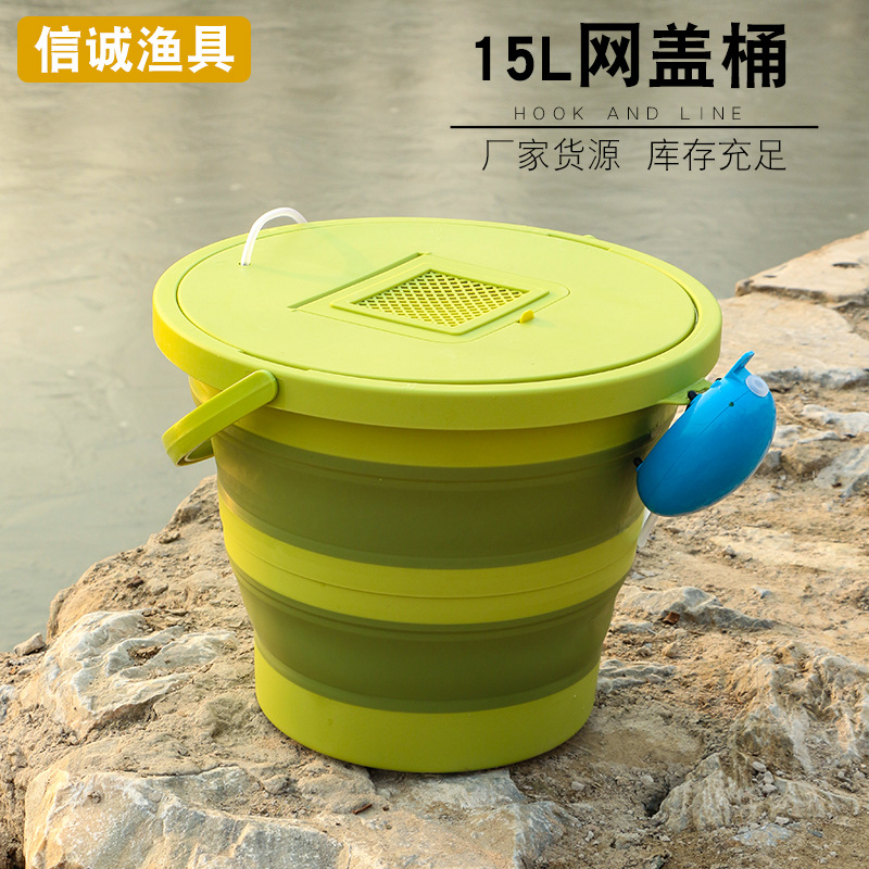 折り畳みバケツ釣りネットカバー付き通気活バケツ屋外釣り大容量15リットル洗車収納折り畳みバケツ