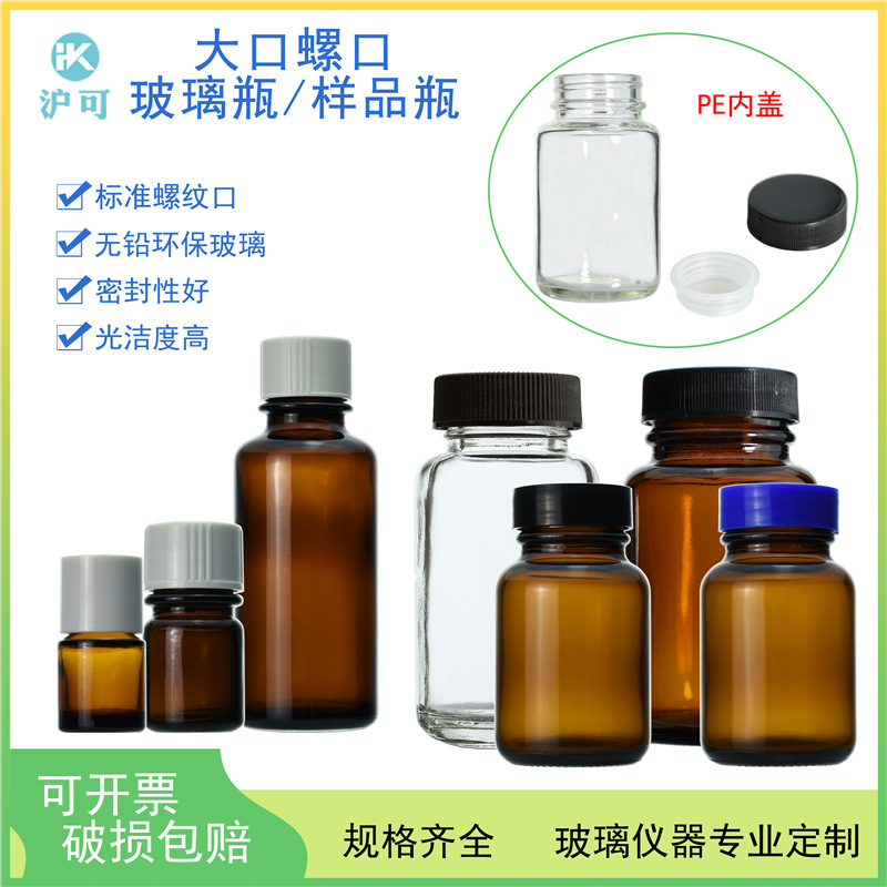 透明茶色ガラスねじ口血清シリンジサンプル瓶10/20/30/40/50/60mlねじ口ねじリング