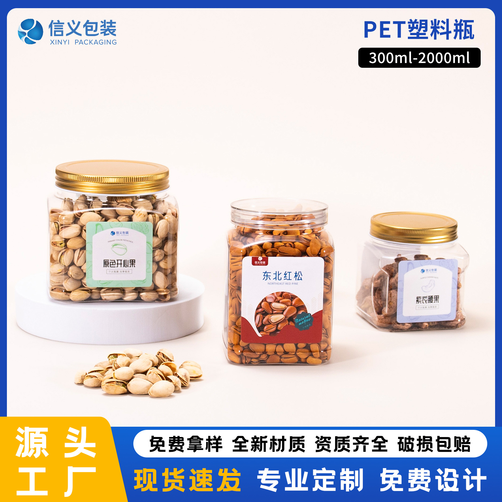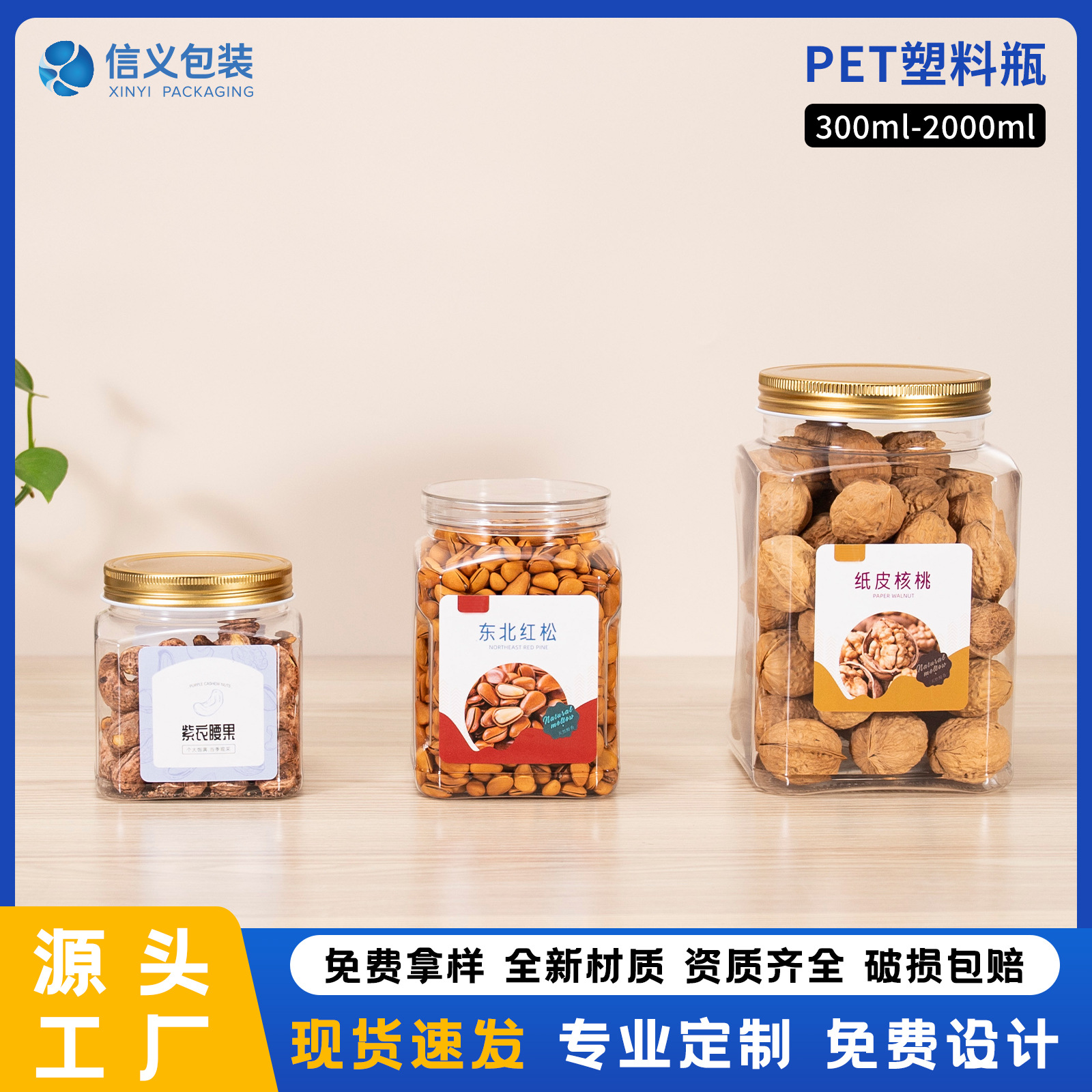 PETプラスチック食品瓶、ナッツ瓶、透明保存瓶、ピスタチオ、カシューナッツ、クルミ包装瓶、保存用密封瓶