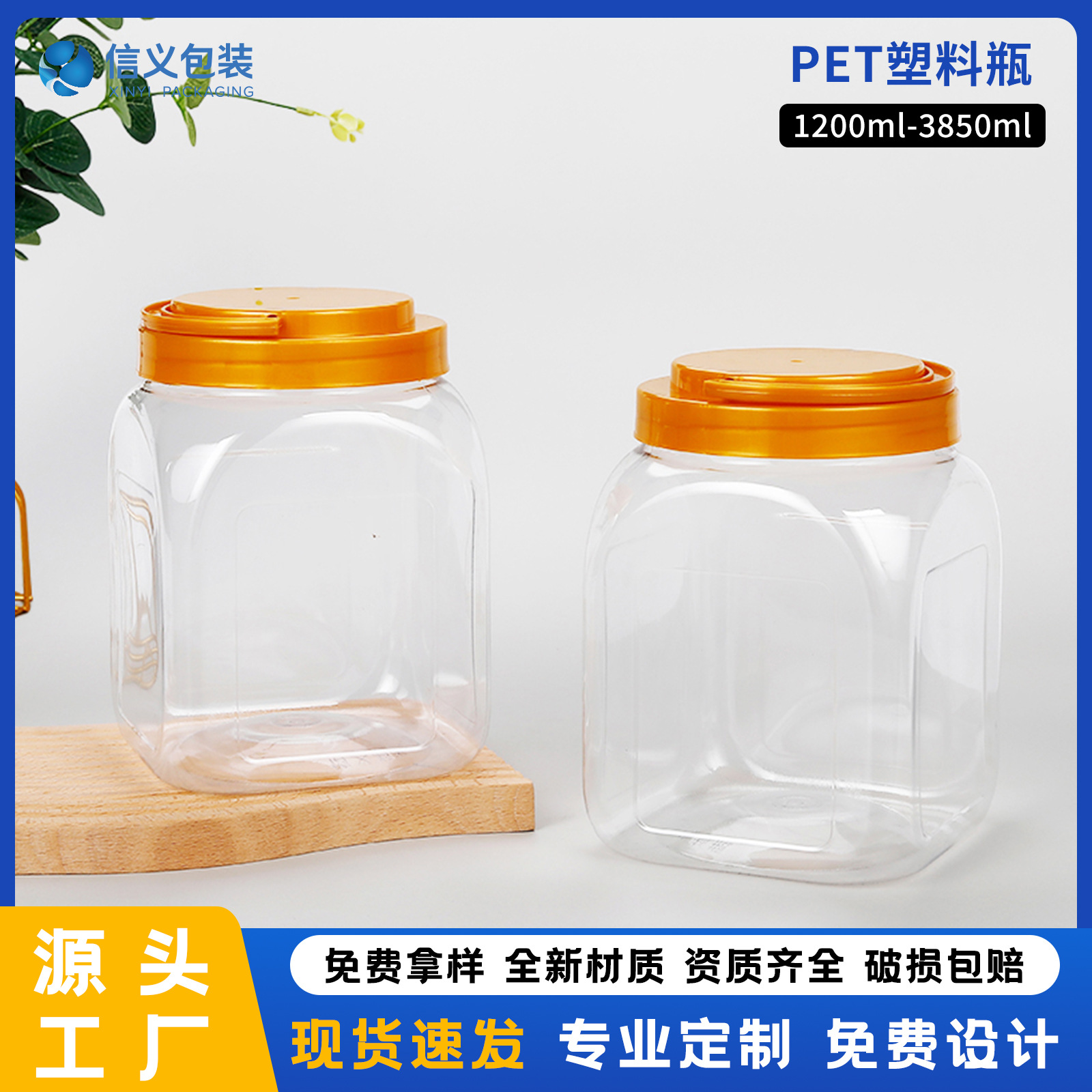 メーカー卸売り食品級pet貯蔵缶スナック缶大容量ナッツビスケット角形食品缶分注瓶