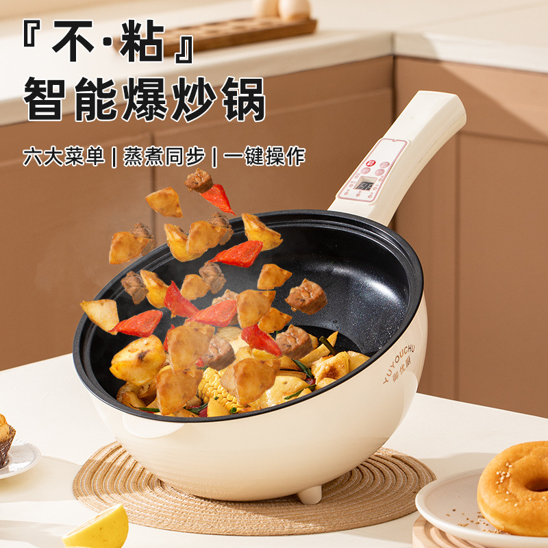 スマート電気煮鍋家庭用学生寮煮麺電気鍋多機能一体型鍋煮ご飯蒸し炒め電気鍋