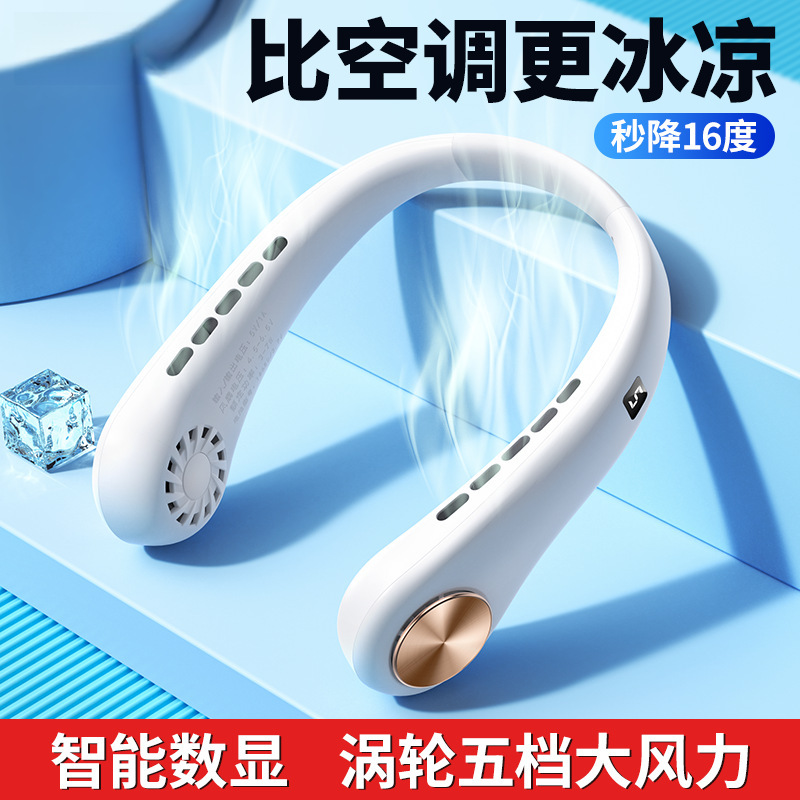新しい葉のない首吊り冷却ファン、怠け者用、首吊り学生アウトドアスポーツ充電式USBファン