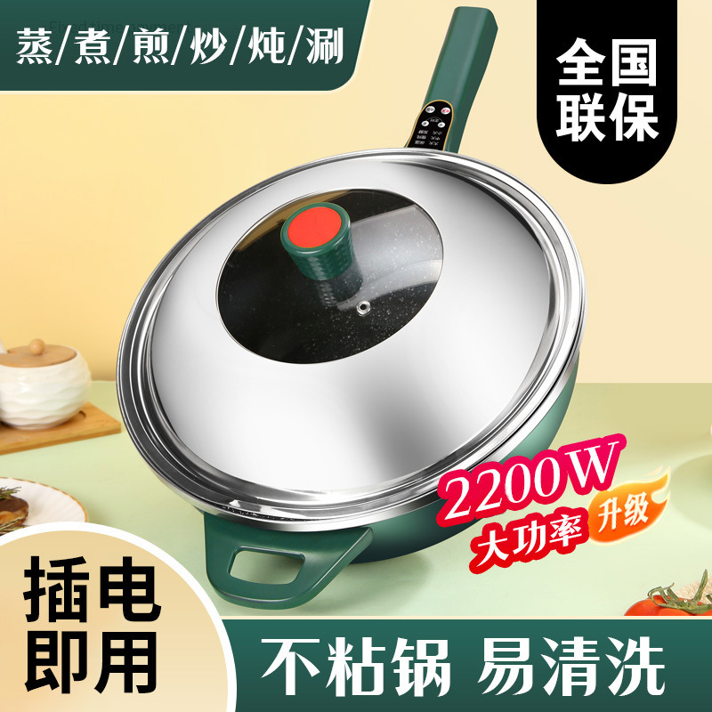 多機能電気中華鍋、家庭用電気鍋、ノンスティック鍋、蒸し、炒め、揚げ、オールインワンプラグイン中華鍋、炒め電気鍋