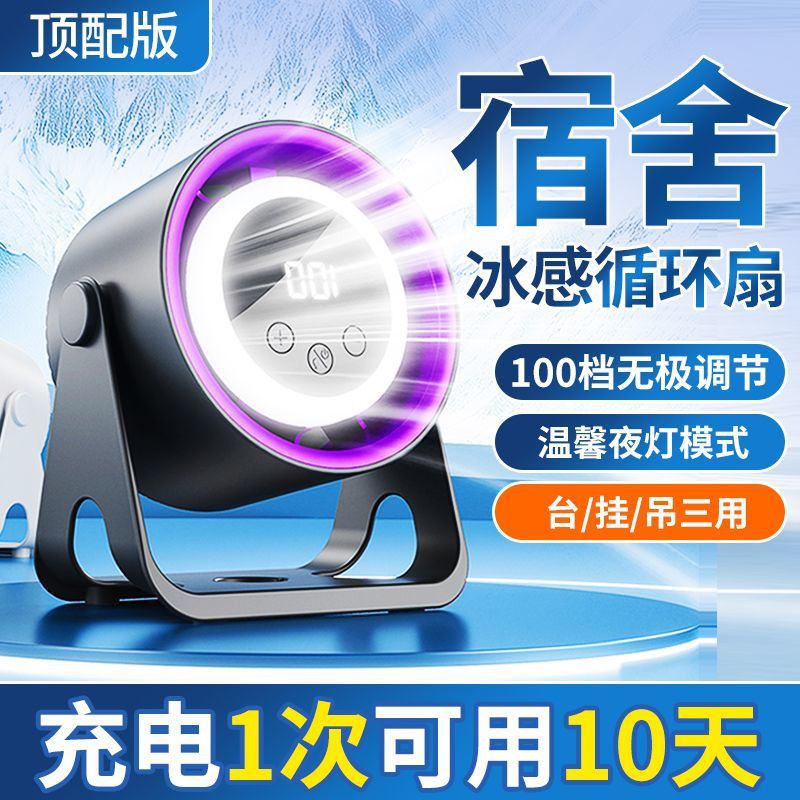 USB充電式小型ファン学生寮オフィスポータブルサイレント強風冷却ナイトライトデスクトップ超長バッテリー寿命