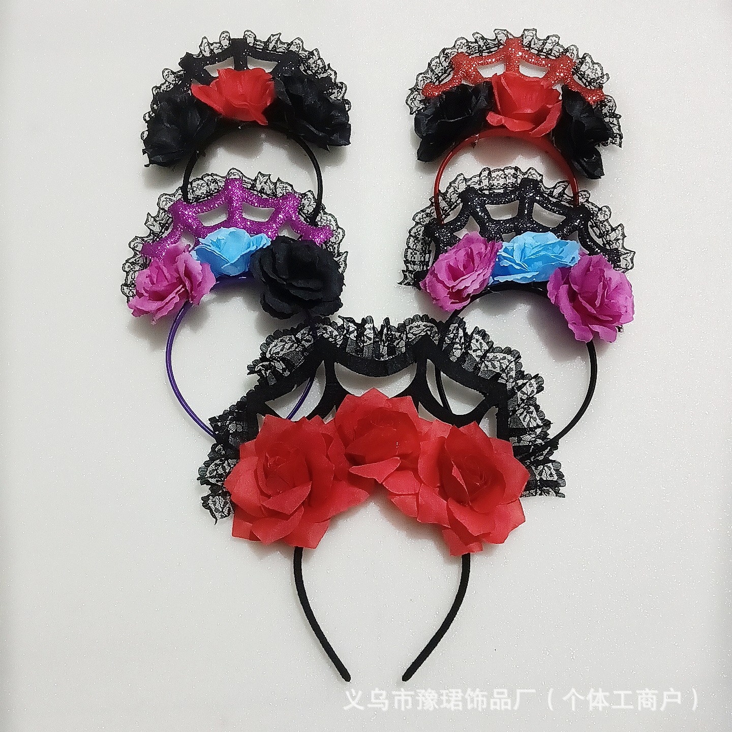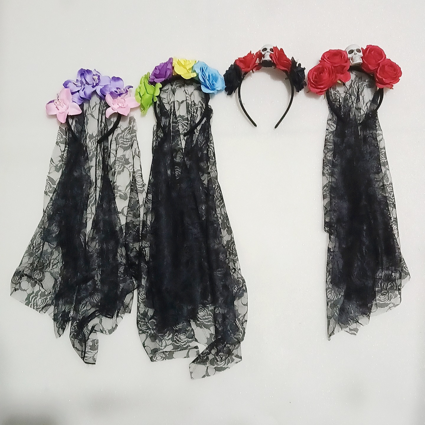 ヨーロッパとアメリカの売れ筋ハロウィン模擬花ヘッドバンドホリデーショーゴースト花嫁ヘアアクセサリー黒レースメッシュ小道具