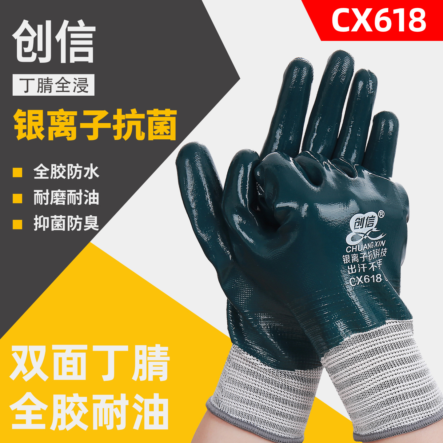 Chuangxin CX618 ニトリルフルゴム耐油性と耐摩耗性労働保護手袋フルハング機械修理消臭銀イオン抗菌