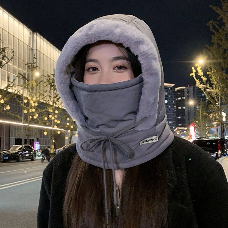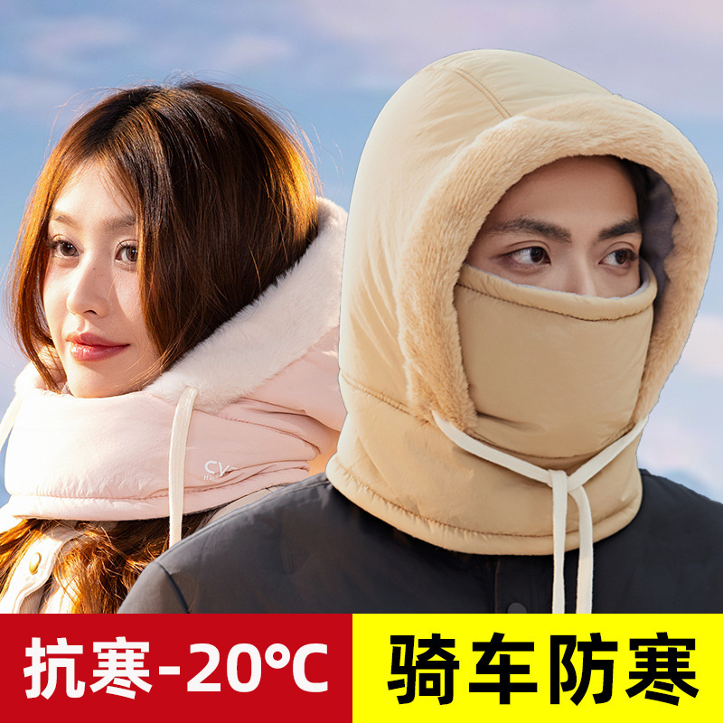 帽子は首を囲んで一体になった女性の冬に自転車に乗る電気自動車の保温神器防風マスクに厚いフードをつけた冬