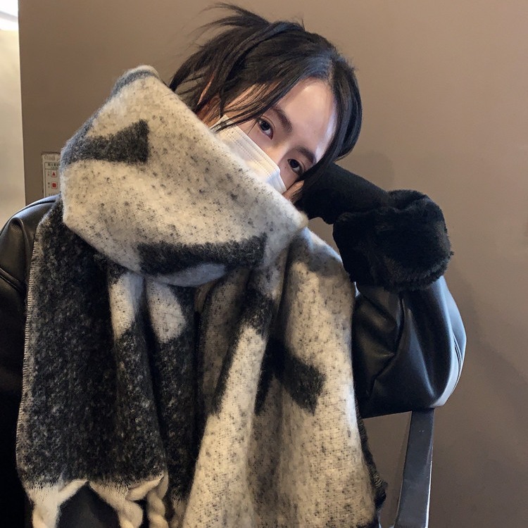 マフラー女性冬2024新ウール混紡韓国版ins潮学生高級感ニット保温マフラー潮