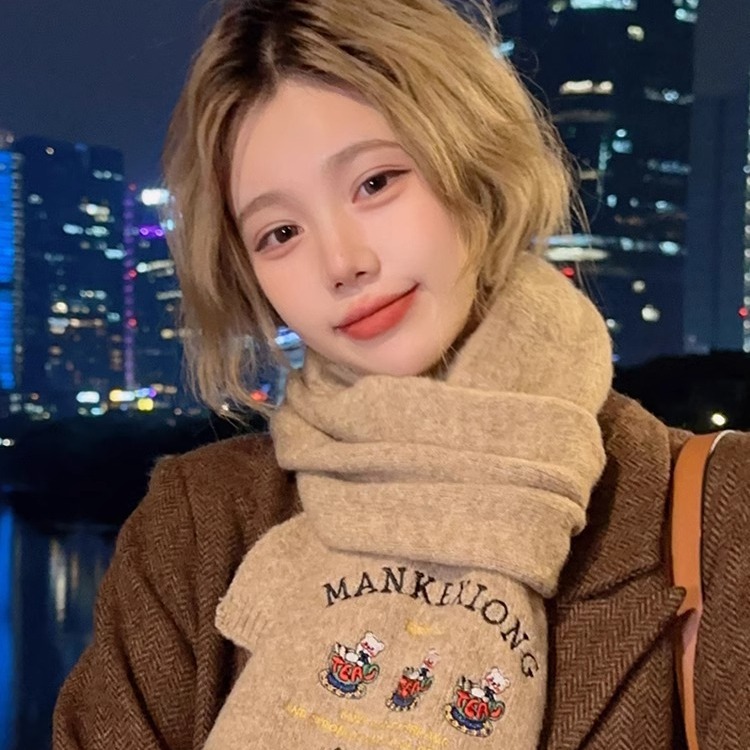 2024項韓国版純色高級感刺繍カシミヤマフラー女性冬学生保温カップルニット首