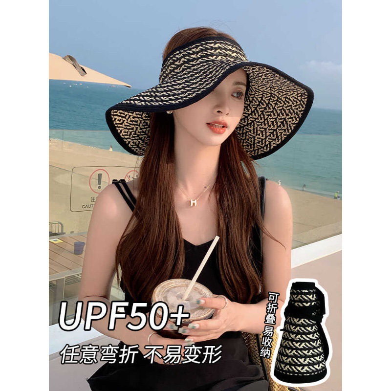 大きなつば折りたたみ式旅行日焼け止め中空帽子女性の 2024 新しい夏の日よけ帽子抗 UV 麦わら帽子