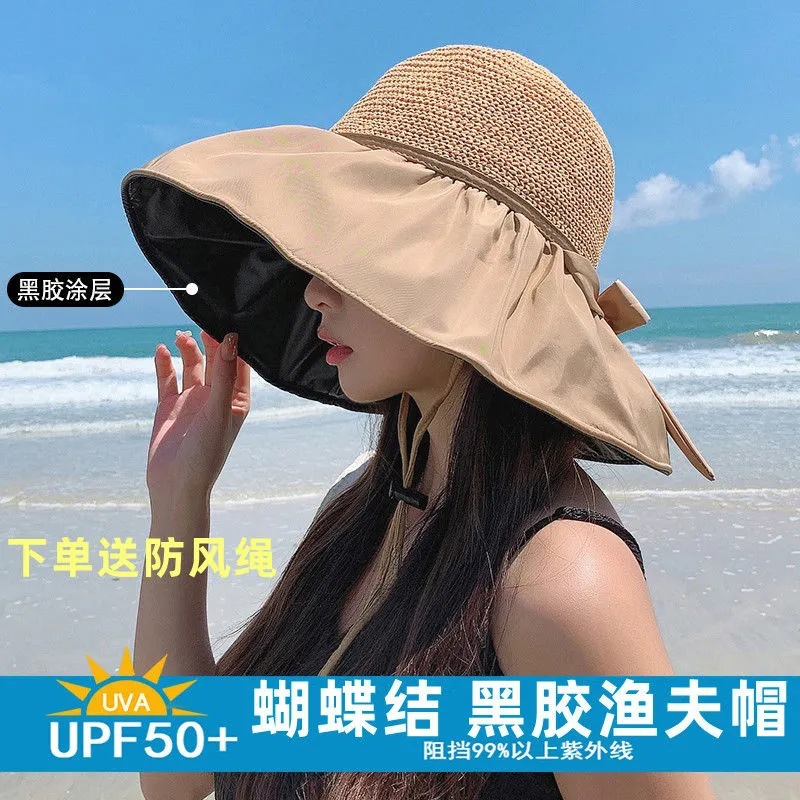 黒ゴム紫外線防止日焼け止め帽子女性ファッション百合大ひさし顔日よけ折り畳み漁師帽子夏