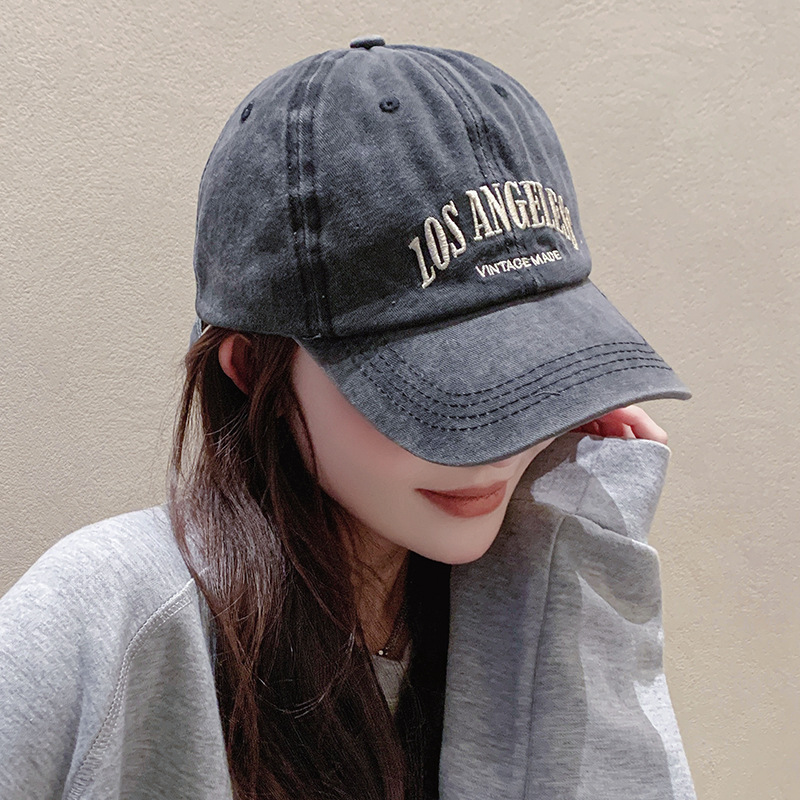 Insレトロな灰色の野球の帽子の女性のタイプの夏のアメリカ式の水洗いの大きい頭は湿っています。