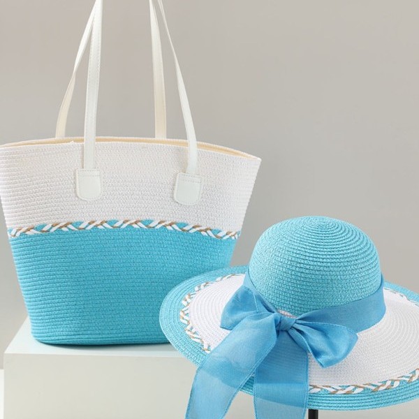 包包帽子女两件套夏季平檐草编圆顶显脸小遮阳帽百搭出游海边沙滩