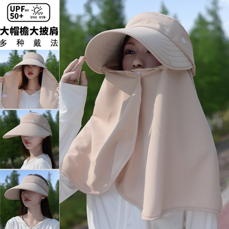 夏の新しいスタイルのシームレスなオールインワンの大きなつばの空のトップ日焼け止め帽子女性の抗 UV 日よけ帽子屋外フェイスカバーキャップ