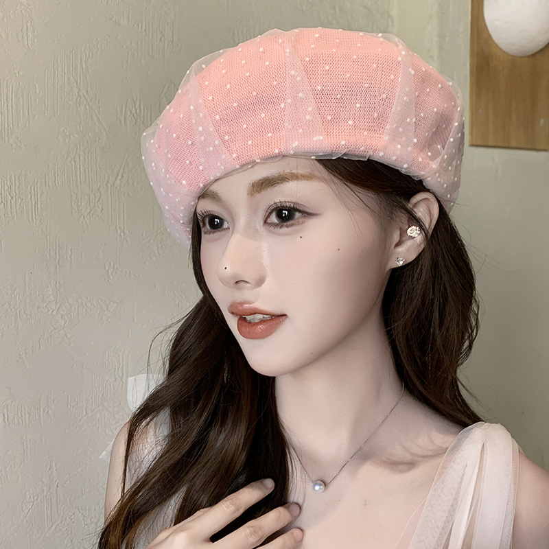 春夏リネンエレガントベレー帽薄いレースペインターハットメッシュ帽子女性のファッショナブルな新しいスタイル小顔通気性