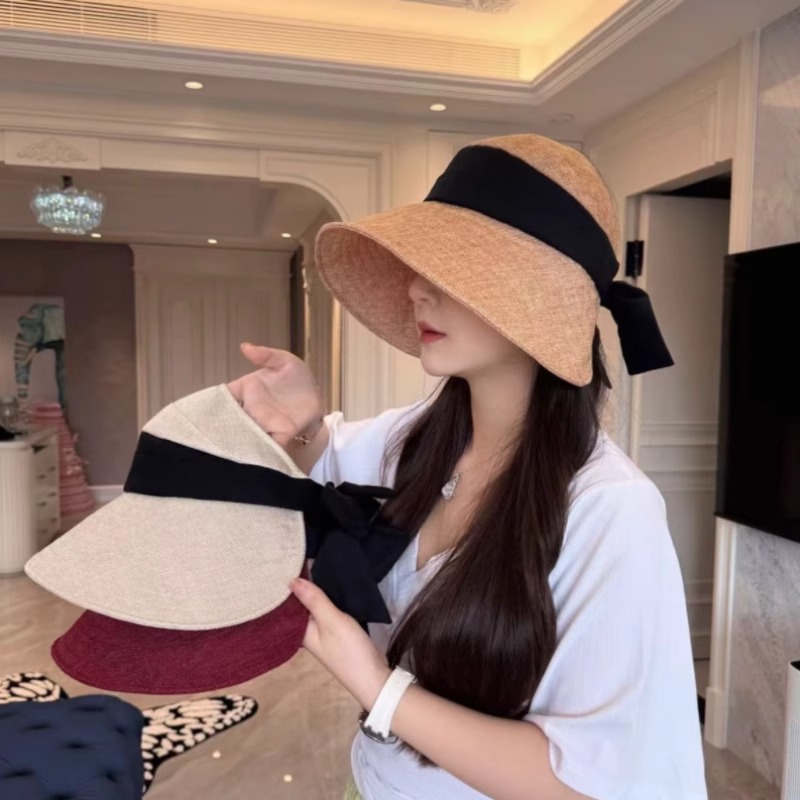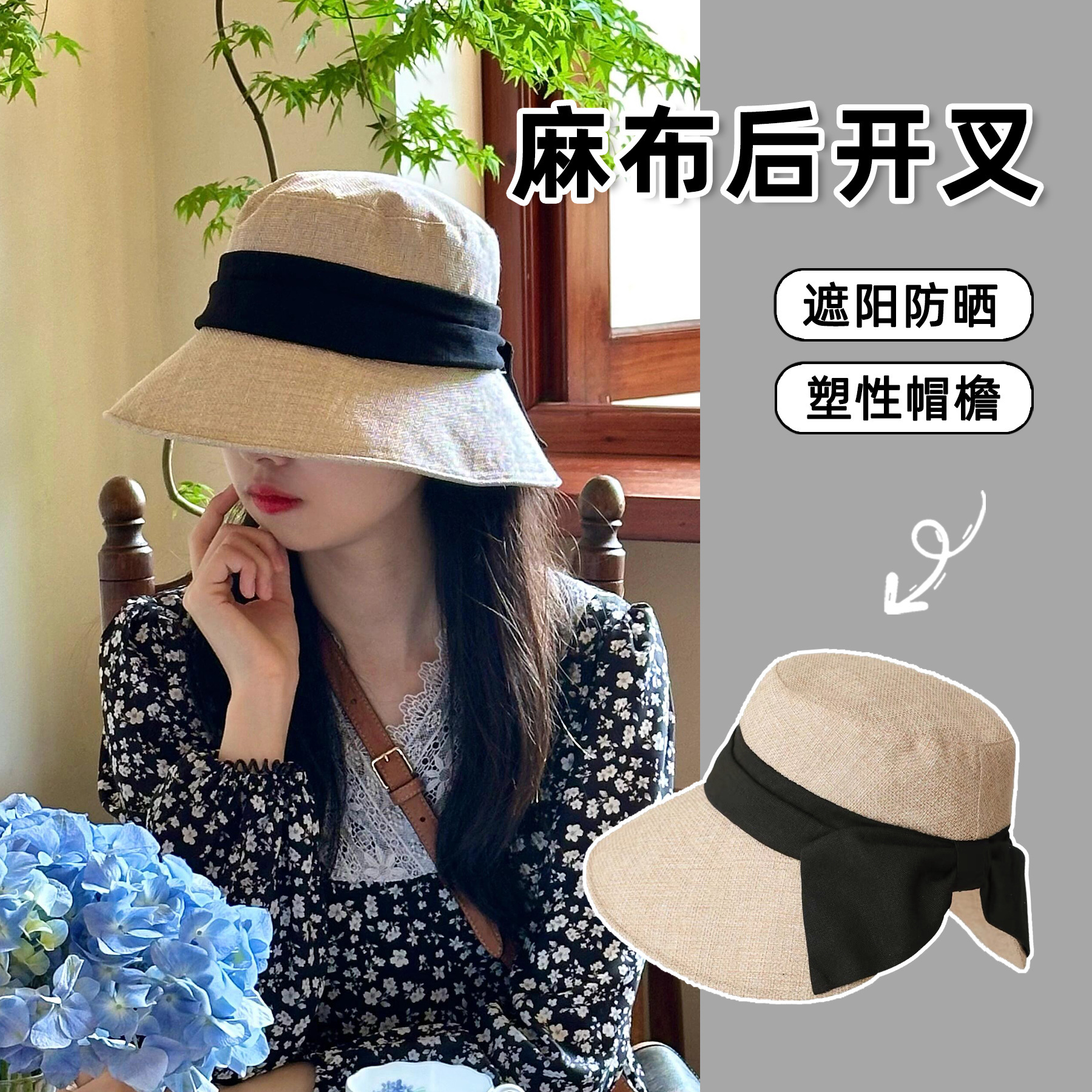 日本のファッショナブルなシンプルなリボンウェビング中空トップハット女性の夏の新しい軽くて通気性のあるオールドマネースタイルの漁師の帽子