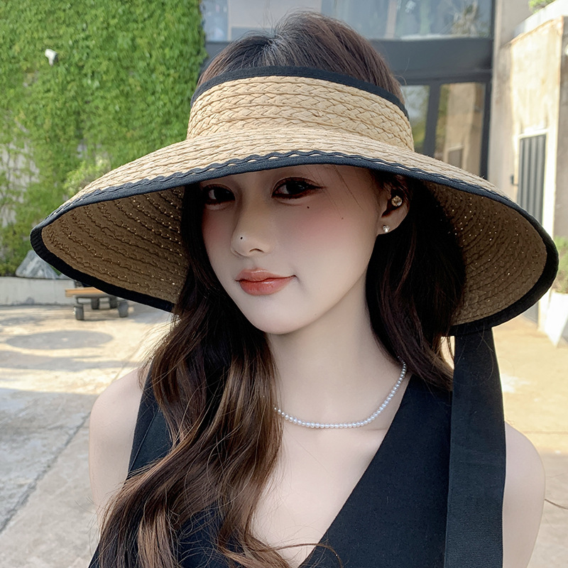 通気性のあるサンシェード中空トップハット、麦わら日焼け止め帽子、大きなつばのトップレスヘッドバンドサンハット、中空アウトドアビーチハット