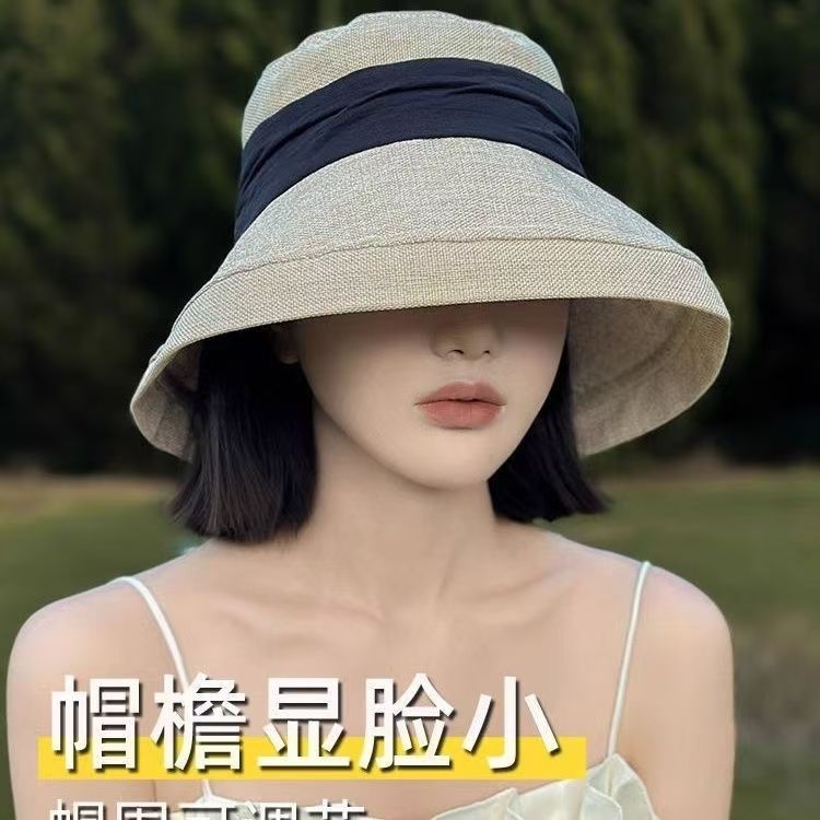 〜日本製の大きなつばのフィッシャーマンハット、女性用夏用薄い顔を覆う日焼け止め、顔を大きく見せる小さな盆地帽子、秋のトレンド