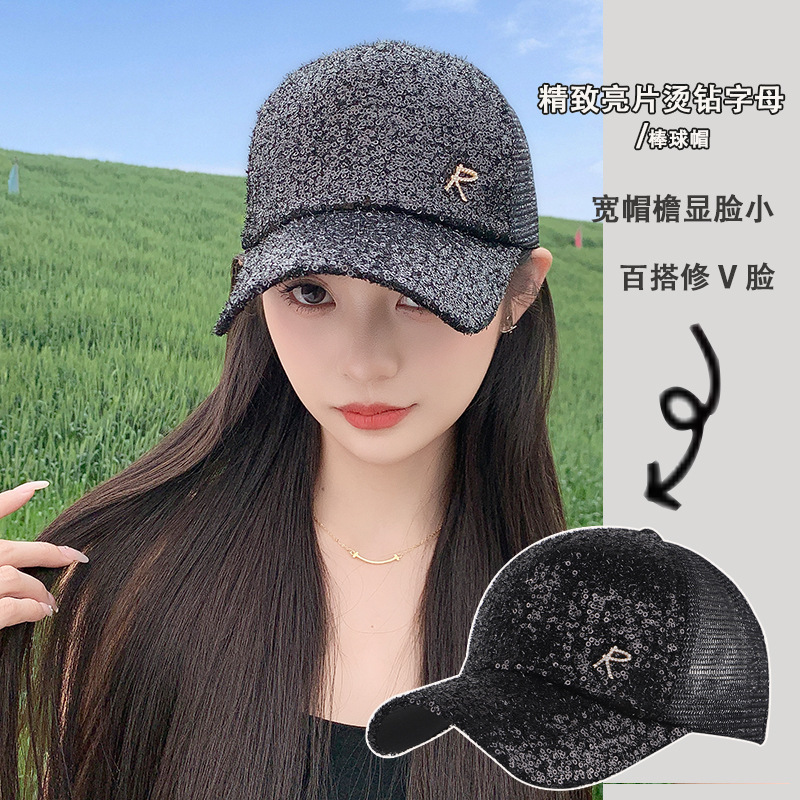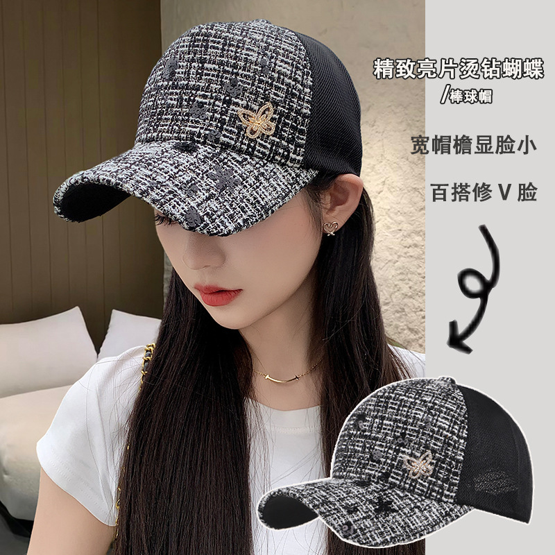 25新型スパンコール帽子女性春夏ファッションカジュアル野球帽水ドリル蝶鴨舌帽韓網帽