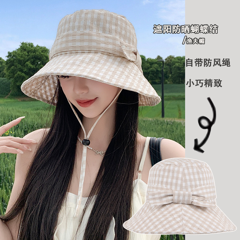 夏の女性の日本の両面の格の日よけの帽子の小さい清新な漁師の帽子の広いつばはひもを緩めて防風して吹いて紫外線のたらいを防ぎます。