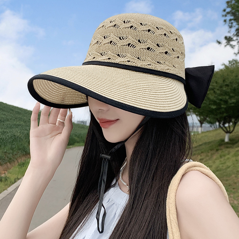 夏の日よけのアヒルの舌の帽子の女性の韓百合の大きい軒は紫外線の日よけの日よけの顔の小さい麦わら帽子の太陽の帽子を防ぎます。