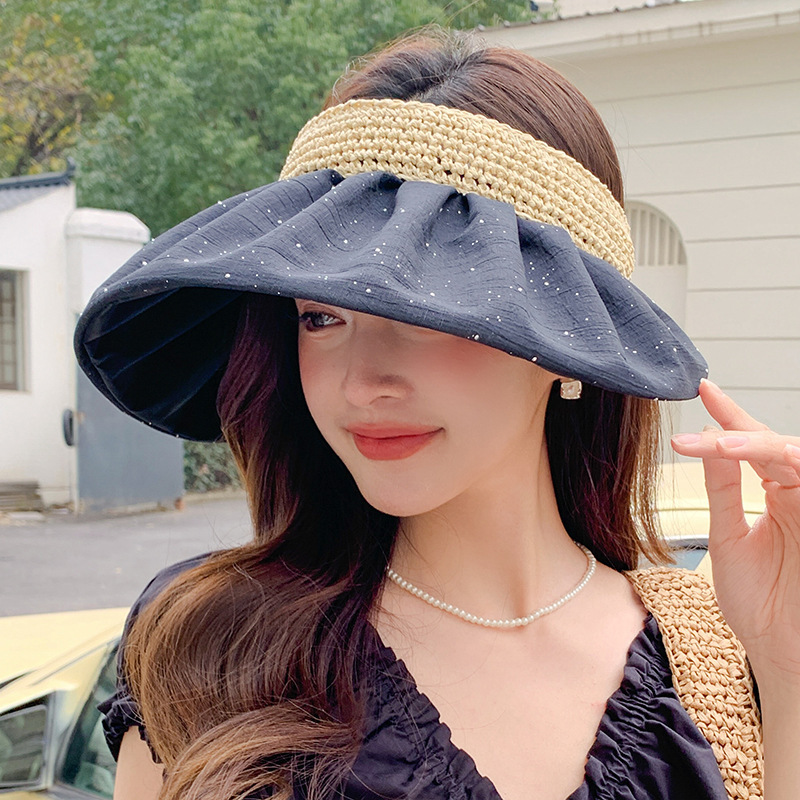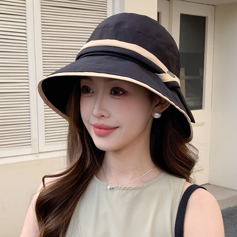 夏の日よけ漁師帽日焼け止め帽子女性紫外線防止黒ゴム顔の大きな軒の純色の太陽帽ビーチ帽