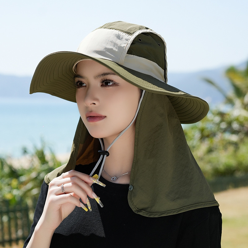 アウトドア日焼け止め帽子新型漁師帽子の首保護通気性マスクの日よけ帽子の大きい軒の男性の日よけ帽子の女性の釣り帽子