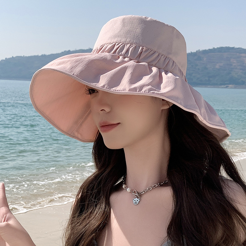 漁師帽の大きなつばの日焼け止め帽子女性夏の新型紫外線防止顔屋外旅行通気日除け帽子