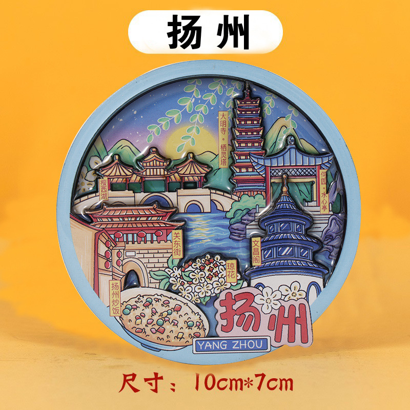 記念品都市磁気吸引建築木質観光揚州国潮ランドマーク滴糊貼り文創冷蔵庫貼り