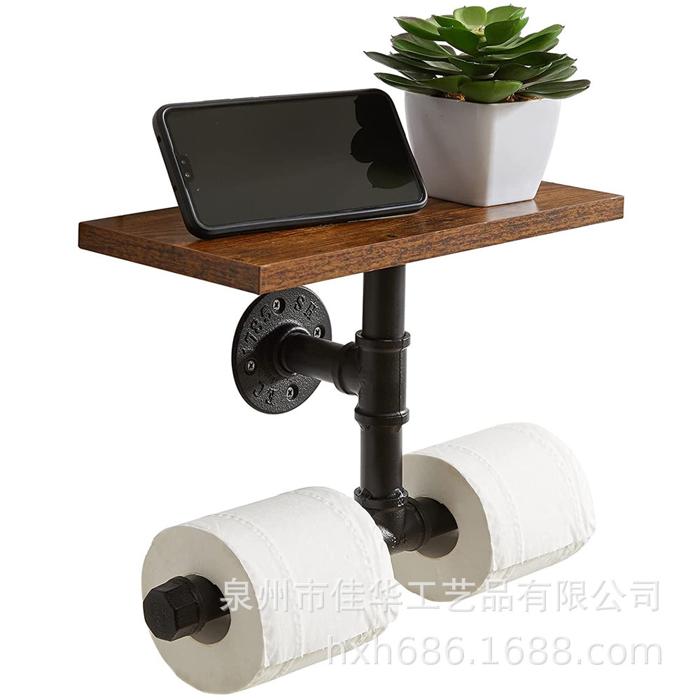 双頭の鉄芸の水道管の物置棚の上の壁のティッシュの棚のトイレの壁のハンガーのトイレの収納は物置棚を整理します。