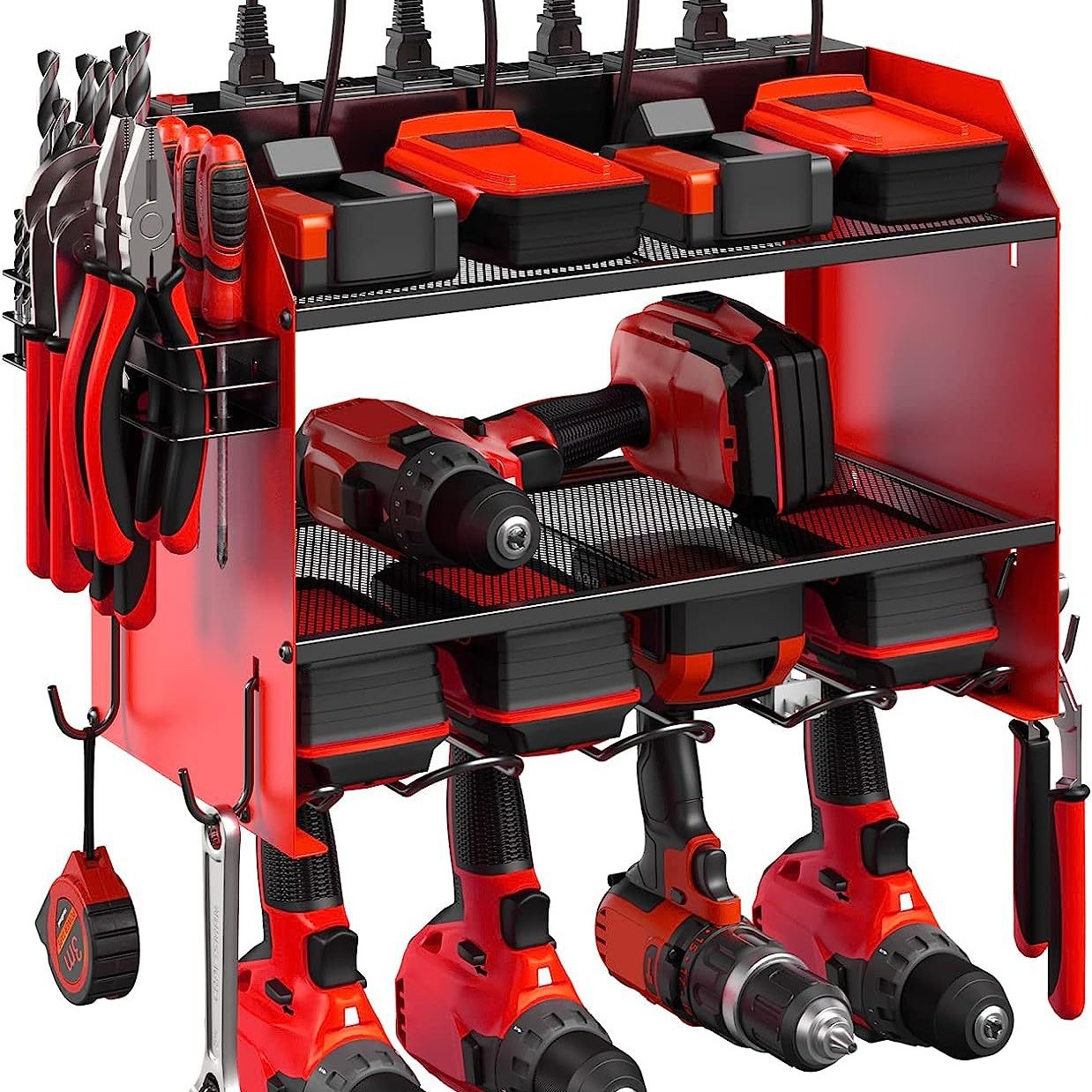 電動工具収納棚車庫工具収納棚壁掛け式金属工具棚実用コンセント付き