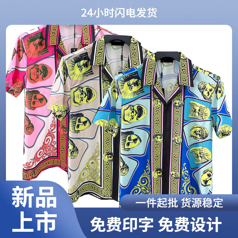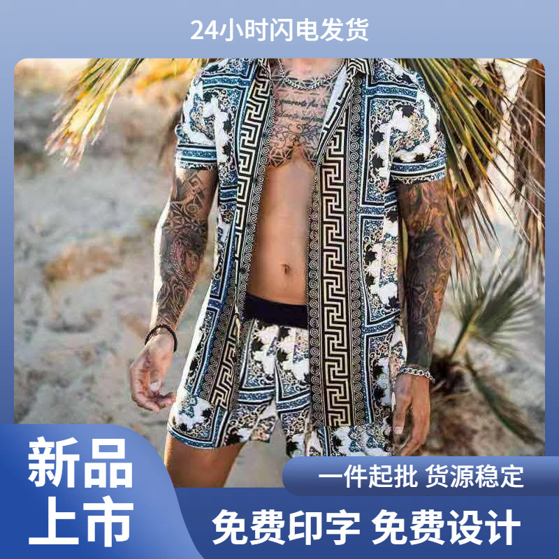 【スポット】2021春速売通独立駅越境欧米プリントシャツ速乾型カジュアルスーツ男