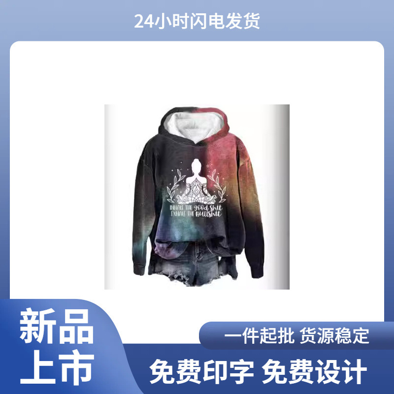 ベルベットとパーカーのぼかし効果3dデジタルプリント秋冬男女のガードル