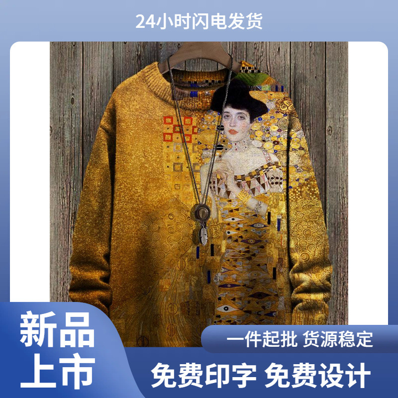 2023秋冬新型欧米越境抽象風プリント落肩長袖女性式衛衣カジュアルセーター