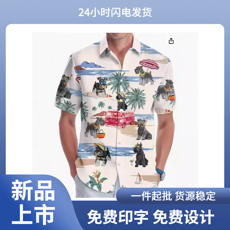 春の新型欧米ファッションファッション外国貿易3dデジタルプリントメンズハワイtシャツ半袖シャツ