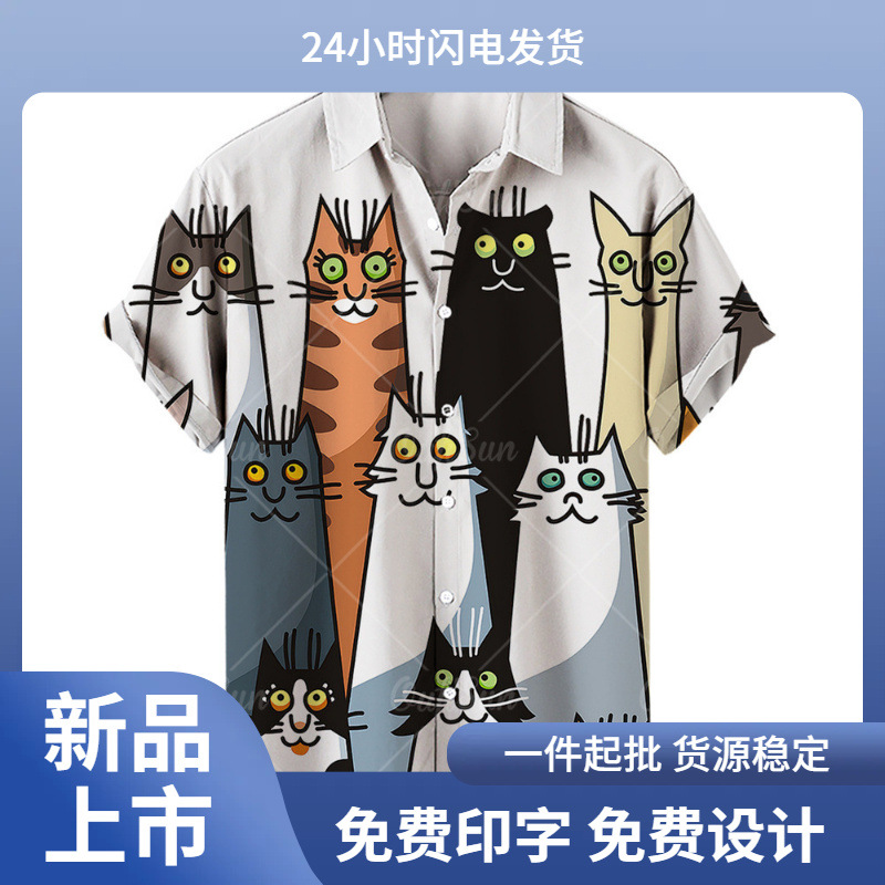 かわいい子猫3dデジタルプリント男性カジュアルシャツ2023新型男性半袖シャツクロスボーダー